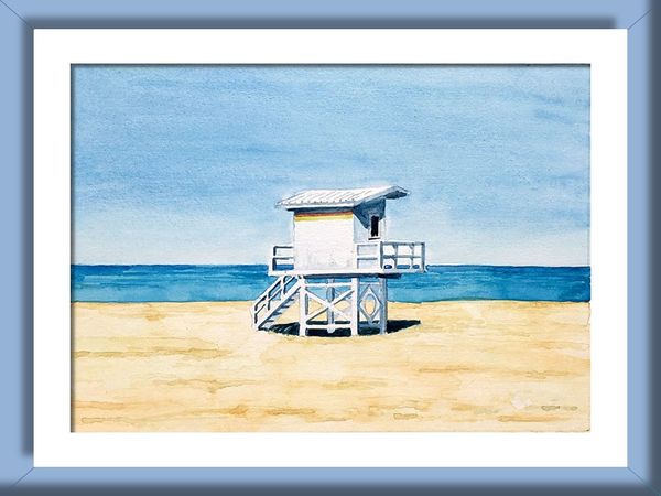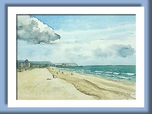 Plage de Deauville Aquarelle sur papier Format 28cm x 20cm | |  Plage de Trouville Aquarelle sur papier Format 28cm x 20cm |